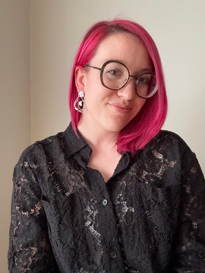 Ces boucles d'oreilles sont faites d'argent sterling. La texture a été créée par fusion d'argent. La finition est brillante avec une touche d'oxydation pour créer un effet de profondeur. Ces boucles d'oreilles sont une pièce unique ; il n'y a qu'un seul exemplaire de disponible. Elles sont serties d'un grenat rhodolite naturel (rose foncé) de 3 millimètres de diamètre.