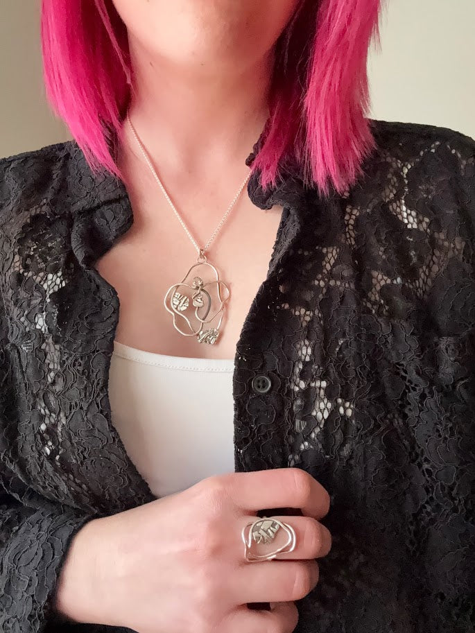 Il s'agit d'une pièce unique ; il y a seulement un seul exemplaire de disponible. Le pendentif vient avec une chaîne blé en argent de 18 pouces. Pour une chaîne plus courte ou plus longue, contacte-moi directement.